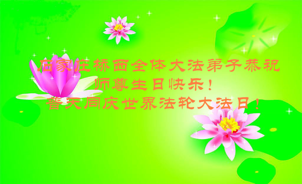 石家庄桥西学法小组的大法弟子恭祝师尊生日快乐,恭祝法轮大法洪传全世界。