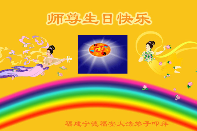 福建宁德福安大法弟子恭贺慈悲伟大的师尊生日快乐!
