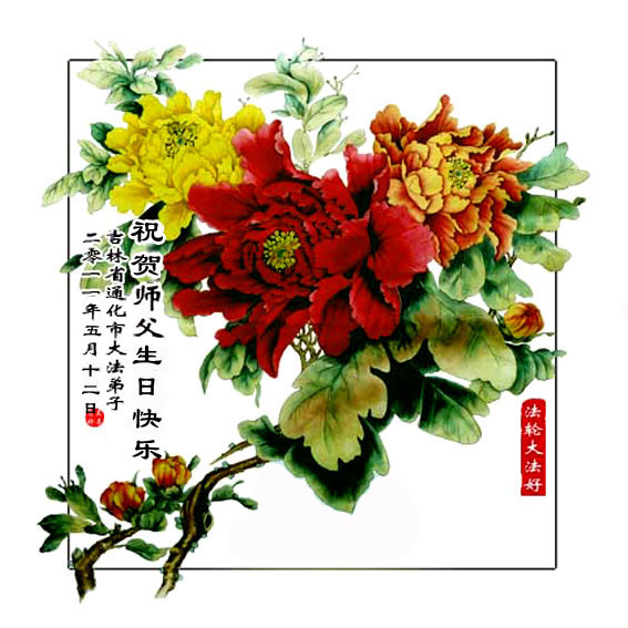 风雨过后花更艳 救度众生不得闲 信师信法不懈怠 正念正行得圆满 又逢一年五一三 弟子愿师笑开颜 淮南大法弟子贺师尊华诞暨法轮大法日