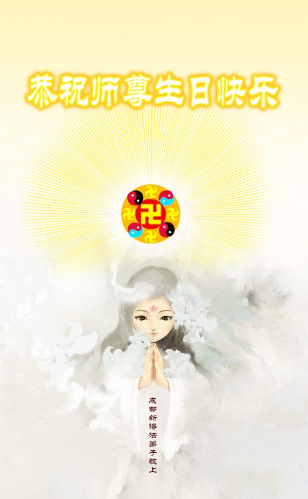 师尊:您辛苦了!弟子无法用语言表达对您的感恩,谢谢师尊的无量慈悲救度! 沈阳市全体大法弟子恭祝师父生日快乐!