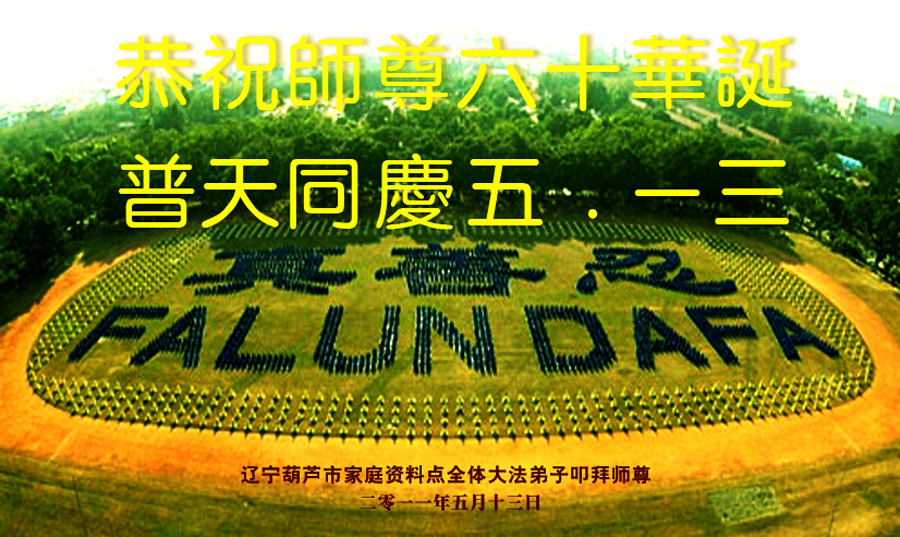 葫芦岛市大法弟子恭祝慈悲伟大的师尊六十华诞快乐!