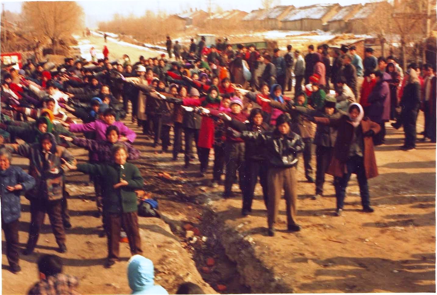 | 【明慧网二零一一年六月八日】转眼间,我修炼法轮大法已有十五个春秋了。回首走入大法修炼的十五年,期间有许多值得我回忆的人和事,但我最难忘的还是九九年七月二十日前洪传大法中的点点滴滴。 一、听闻大法福音 走入修炼 清晰的记得,十五年前的一天,儿子拿来了一本《转法轮》和一本《中国法轮功(修订本)》给我看,我接过来一看,书皮上面有法轮图形,接着,《转法轮》三个字打入我的脑海,心中不仅一亮:这是佛家修炼大法啊!当看到师父照片时,我的心中一酸,在无比亲切的情感中,泪水禁不住的流了下来!伴着通透全身的一股股暖流,我连夜看完了《中国法轮功(修订本)》。看完后,我知道自己是再也放不下法轮功了。 但是,我心中还是有烦恼。接触法轮功之前,我学过多种气功,自认有十年的周易八卦功底,都放下了,挺可惜的。我原本在本地小有名气:看个病、祛个邪、十里八村都知道。通过读《中国法轮功(修订本)》后,我知道了炼功是不能掺着炼的:又炼这个,又炼那个,是不行的。法轮功的确好,要一下放弃以前的东西,心里放不下。 经过半个月的思想斗争,我最终还是决定修炼法轮大法!决定下来的第二天,我就和儿子说:我要炼法轮功,我要到城里去找法轮功的炼功点。儿子认识师父的跟班弟子,于是,我们就找到了她。她带我们去了城里的法轮功辅导站。那里的辅导员热情的接待我们,义务教我们五套功法,向我们讲师父传法的故事以及大法在世间洪传的情况,最后,辅导员还赠给我们两枚法轮章、《转法轮》、《中国法轮功(修订本)》以及炼功录音带各一套,让我们回家后找有缘人,组织炼功点教功。 我回家后做的第一件事就是先清理家中的环境:佛像送给人了、假气功书都烧了、桃木剑也送给人了……正式的走入大法修炼。 二、人传人,心传心,大法走進百姓人家 当时,我心里也犯难:找谁教功呢?没有别人,那就从自己家人、亲属、朋友、儿子的同学开始传吧。开始,他们都不理解为什么要炼法轮功,我就给他们讲修炼的故事,和他们一起学《转法轮》。随着学炼功法,所有的人都不同程度的感受到了大法的神奇。随后,我就邀请城里辅导站的学员来我们这里教功。 一九九六年元月五日,城里辅导站的两位辅导员来到我家,义务教我们功法,当时,我们这儿有十三个人参加,这就是我们这里的第一个炼功点!两天后,城里辅导站的两位辅导员返城,我们十三人就在一起学法炼功。 当时的炼功点设在三姐家,三姐比我们早半年修炼法轮功,自然就成了我们这儿的辅导员。初期,我们只重视炼功,对师父讲的法学的很少。一个星期后,大姐送来师父在济南的讲法录音,按照要求,我们分九天听完了师父的讲法录音。听法的过程中,我们每个人的身体都得到了净化、心灵也得到了升华,最重要的是,我们都明白了什么是修炼。 我自身的变化很大、满身的病不治而愈。因为我过去学过多种气功,经常用小道给人看个病驱个邪的,自己染上很多病(高血压、肺结核、哮喘、胃炎、肾炎、关节炎等)都不知道是怎么得的,只是觉得身体难受,根本就不知是练假气功和给人看病带来的灾难,因为有病,心里也不好受,就经常和家人发脾气、骂人,家庭矛盾不断。 九天的讲法录音让我明白了做人的道理,从此,我的家庭和睦了!看到我的转变,老伴和女儿也先后走入了修炼。亲戚朋友和左邻右舍都看到了法轮大法的美好,就都主动来学。这样,靠着人传人心传心,一个月后,当城里同修来送师父教功录像带和济南讲法录像带时,我们这儿就有三十个人学法炼功了! 人得到了好的东西后,都想介绍给亲朋好友,于是,我们这就出现了亲传亲、友传友学炼法轮功的现象。再后来,通过深入学法,我们悟到要让更多人得到大法就必须建立更多的炼功点。于是,我就和辅导员商量:咱们应该下去建炼功点!这样,从四月份开始,我们就建炼功点,到九月份时,我们一共建了五个炼功点。 随着炼功点的建立,更多的有缘人入道得法。来学功的人多了,大法书籍不够,我们就开始抄书,功友们比学比修,掀起了一股学法的热潮。到十二月份时,我们这儿就有一百二十多人在炼法轮功了!我记得当时我们也成立了辅导站,六个炼功点,我们一直遵守师父对辅导站“不存钱、不存物,只积功德”的教诲。这期间,城里的法轮功辅导站也多次派人来我们地区和我们切磋交流。交流中,同修们普遍悟到:要让众生尽快得度,就得取消空白点,让大法走向各个村屯。于是,炼功早的老学员就各负其责,下到村屯去建炼功点。 从一九九七年三月开始,我们就走出来通过集体炼功的形式向世人洪传大法。 记得我们第一次去集市上集体炼功时,就有将近二百人参加。当时,几百世人围观着我们。随着美妙的音乐声响起,我们将近二百名法轮功学员共同做起优美的五套功法,向围观的世人展示着法轮大法的祥和与慈悲。几个不炼功临时看护洪法展板的学员,在一旁向世人讲解法轮功祛病健身的功理、讲解法轮大法的美好……看到这种集体炼功的场面,当时就有人要走進来炼功。  历史图片 —— 黑龙江双城法轮功学员在洪法炼功 |