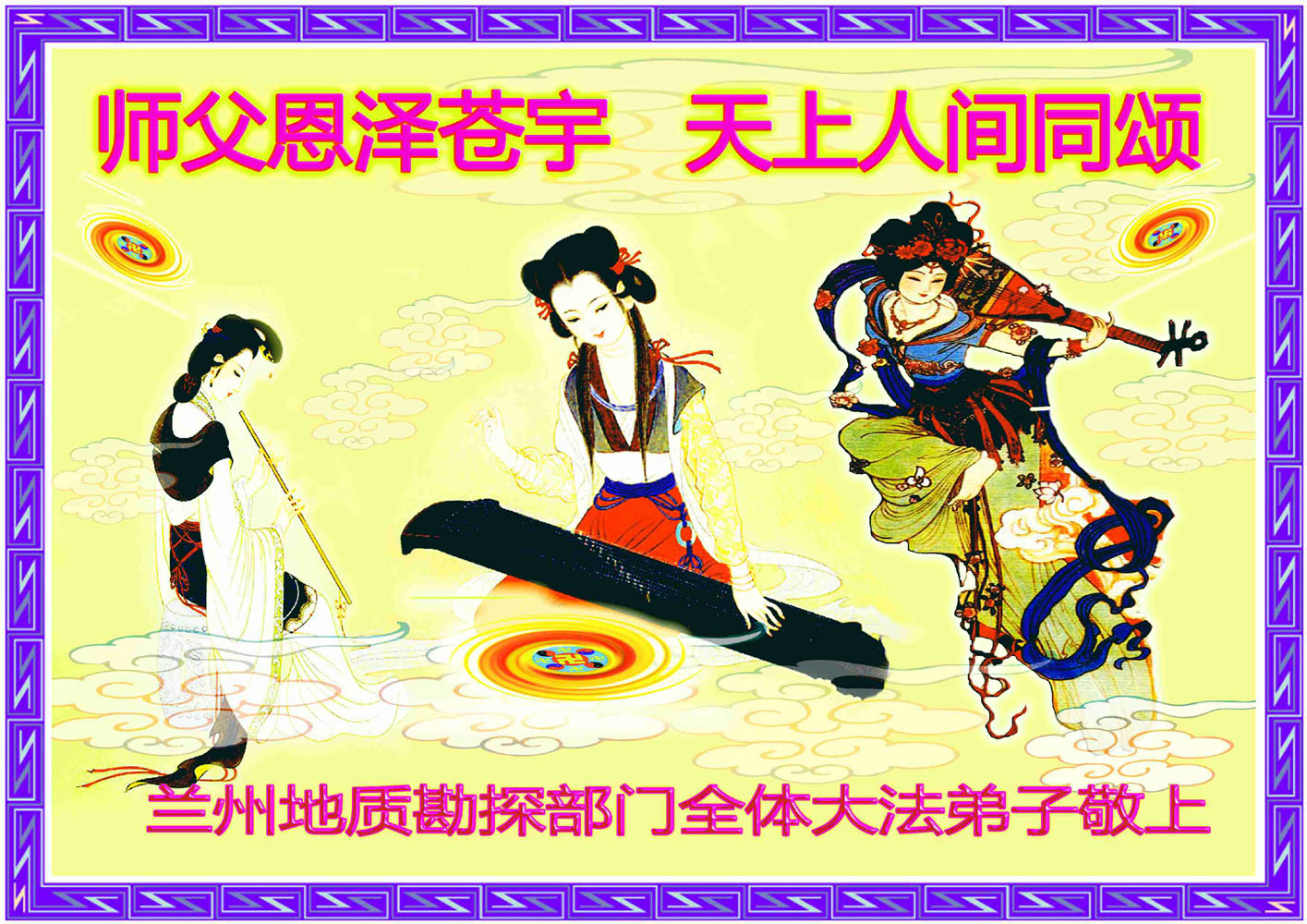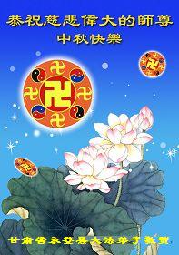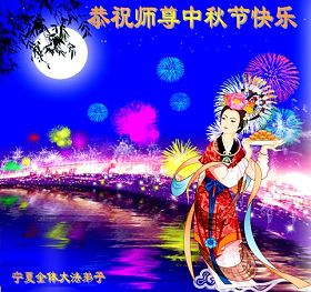 甘肃省永登县全体大法弟子恭祝慈悲伟大的师尊中秋快乐!天上人间共此时 古往今来同此刻 层层众神颂恩师 浩浩苍宇齐恭贺 中秋佳节谢师恩 皓月当空旷宇明 飘飘仙乐普天庆 朵朵香莲满天庭 甘肃省永登县全体大法弟子 合十叩拜 宁夏银川市大法弟子恭祝师尊中秋快乐!甘肃天水大法弟子及明真相众生恭祝师尊中秋节快乐!