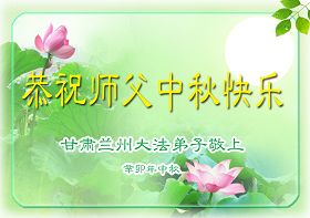 【明慧网二零一一年九月十二日】值此中秋佳节,中国大陆各地大法弟子纷纷寄来贺卡贺词,恭祝慈悲伟大的师尊中秋快乐。以下是来自西北大法弟子的贺卡贺词(共60条)。兰州大法弟子恭祝师父中秋快乐!宁夏银川全体大法弟子恭贺慈悲伟大的师尊中秋快乐!