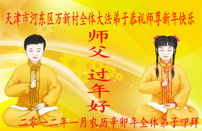 天津市河东区万新村全体大法弟子恭祝师尊新年快乐!