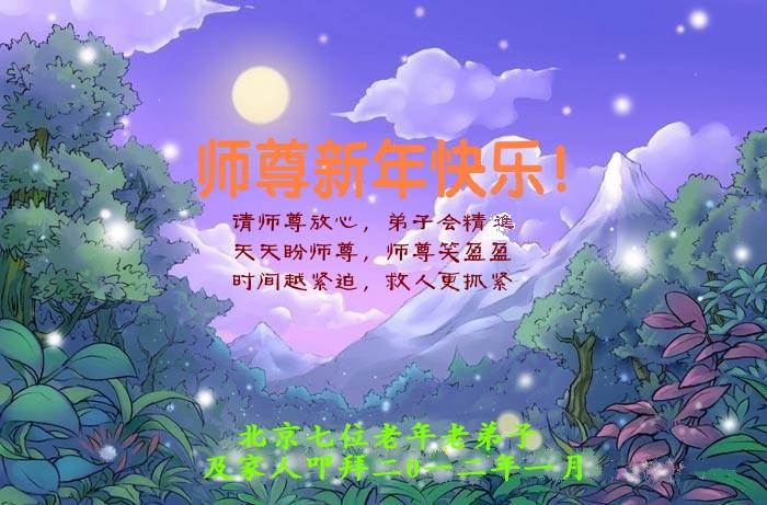 在这2012年新年之际,邢台大法弟子叩拜慈悲伟大的恩师,祝师尊新年好!我们是多么想念您!我们要尽自己的最大努力做好三件事,做您的合格弟子! 北京七位老年老大法弟子及家人恭祝慈悲伟大的师尊新年快乐!