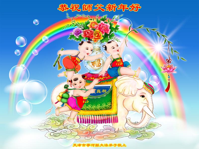 慈悲伟大的师尊过年好!天津宁河全体大法弟子一定按照师尊的安排,坚定地走好以后的每一步,以法为师,讲清真相,救度众生,圆满随师还。 河北大法弟子恭贺慈悲伟大的师尊过年好