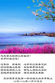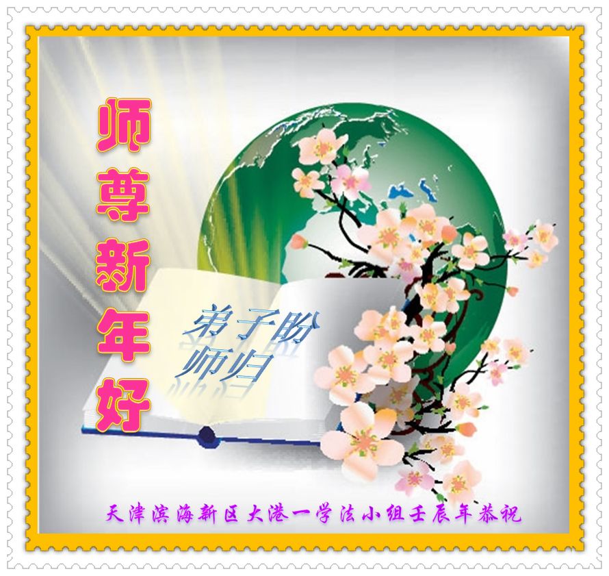 祝师尊新年快乐!弟子们想念您!我们会再精進实修,不让师尊多操心,让师尊多一份欣慰。 天津大港一学法小组敬上。
