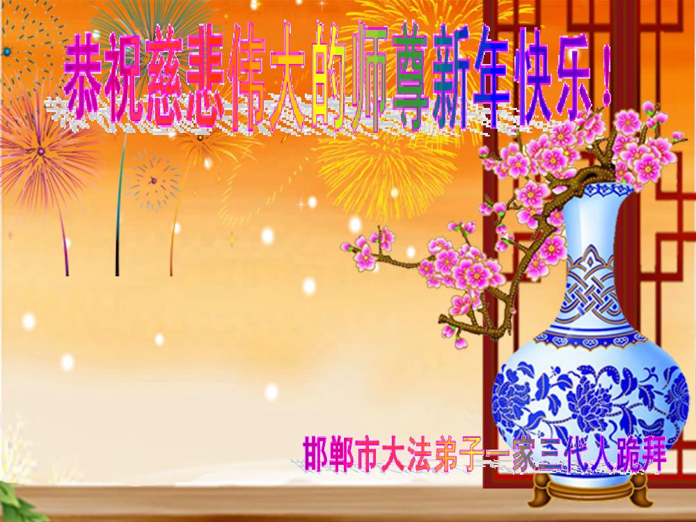 我代表我和我母亲(大法弟子)以及在北京打工的大法弟子祝慈悲伟大的师父新年好!师父您辛苦了!师尊我们一定会做好。 邯郸市全体大法弟子恭祝慈悲伟大的师尊新年快乐!