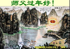 正法又临新一年 弟子给师拜大年 一路走来感师恩 心盼师尊回中原 在二零一二年新年到来之际,津南大法弟子以无比尊敬的心情恭祝慈悲伟大的师父新年快乐!我们一定牢记师尊的教诲,肩负起历史的责任与使命,更加扎实的做好三件事,不辜负师父的慈悲苦度。 二零一二年一月十八日 天津大法弟子敬祝恭祝师尊二零一二年新年快乐!