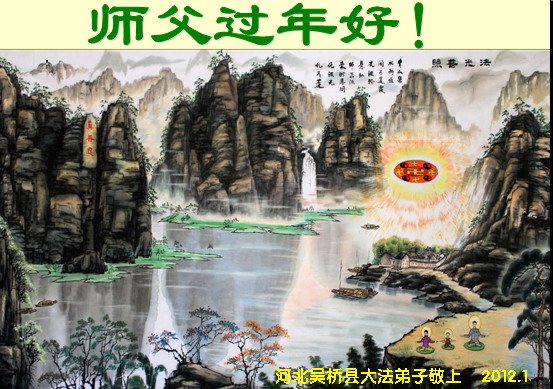 恭祝慈悲伟大的师尊新年快乐!师父您辛苦了!师父过年好! 二零一二年一月十六日 河北唐山大法弟子恭祝师父新年好!