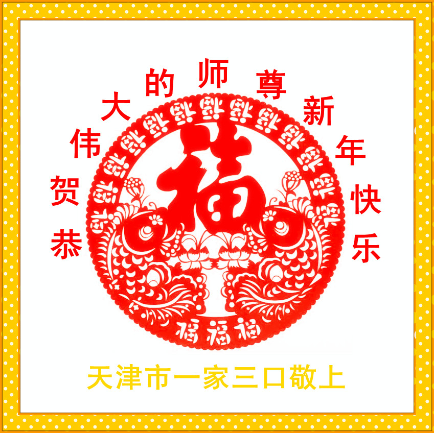 祝师尊新年快乐,在新的一年里弟子一定走好师尊安排的修炼道路,做好三件事,跟上正法進程。 石家庄一家五口大法弟子 河北省秦皇岛市三区四县大法弟子恭祝师父过年好!