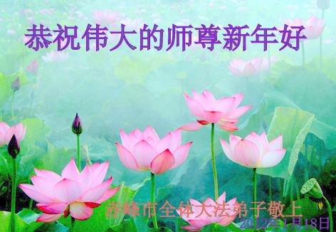 我们想念师尊!师尊看着、帮助着、呵护着我们走过了二零一一年,师尊时时刻刻都在我们的身边,没有师尊的救度就没有我们的一切!这是我们的亲身体验,无限感恩的心无以言表。我们的差距、不足,会在师尊的大法中归正,我们的思想会在正法修炼中不断纯净。我们一定按照师尊的要求,多学法,向内修,走正修炼的路,做好三件事,紧跟师尊的正法進程,完成历史使命。 赤峰元宝区全体大法弟子恭祝师尊过年好!
