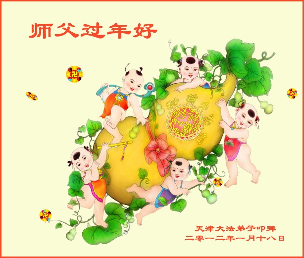 在新的一年里我们更加努力学好法,做好三件事,讲清真相多救人。盼望早日和师尊团聚! 二零一二年一月十七日 天津蓟县大法弟子恭祝师尊新春快乐!