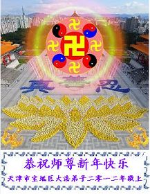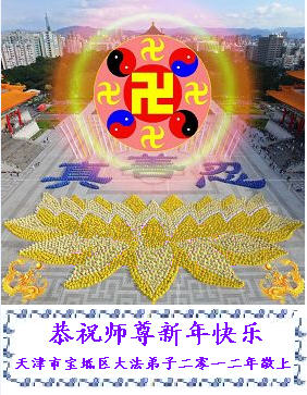 天津大法弟子恭祝慈悲伟大的师尊新年快乐!