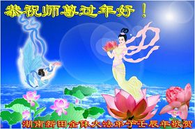 我在新的一年里努力做好三件事,请师父放心,说到做到。 湖北黄梅小池镇大法弟子敬上。 湖南湘潭大法弟子祝师尊新年快乐