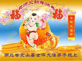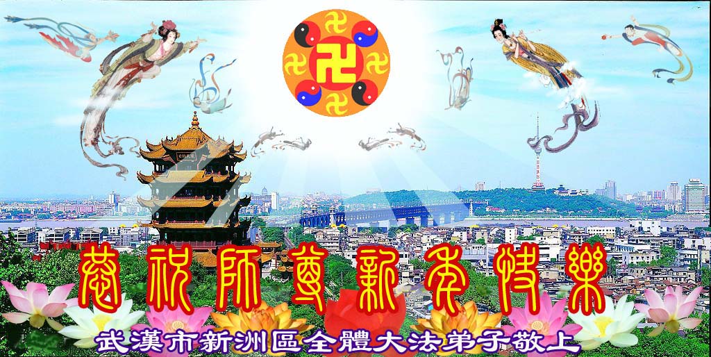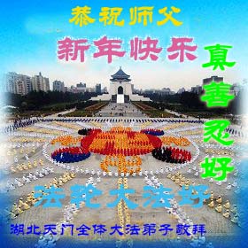 湖北大法学员恭祝慈悲伟大的师尊新年快乐!