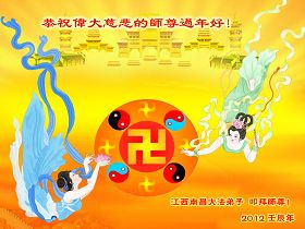 慈悲伟大的师尊:弟子在邪恶的严密跟踪与监控下,艰难的走过了2011年。在师尊的慈悲呵护下,弟子的正念越来越强大,坚实的迈入了2012年。在这辞旧迎新之际,我谨代表我地所有大法弟子和湖北全体大法弟子感谢师尊的慈悲苦度!我们一定牢记师尊的教诲,认真做好三件事,做一个不愧“正法时期大法弟子”称号的大法弟子。 湖北省阳新县全体大法弟子给慈悲伟大的师尊拜年!师尊过年好!