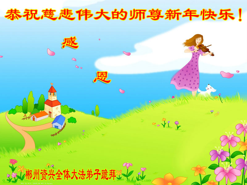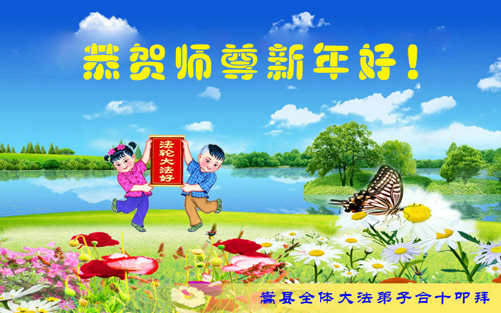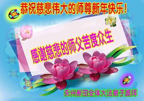 新的一年又来到了,慈悲的师父,您辛苦了!我们这一朵小花在师尊的呵护下平稳的走过10年了,弟子无法用语言来表达对师尊的感激,唯有精進做好三件事,让师尊放心。弟子给您拜年啦! 河南郑州大法弟子恭祝慈悲伟大的师尊新年快乐