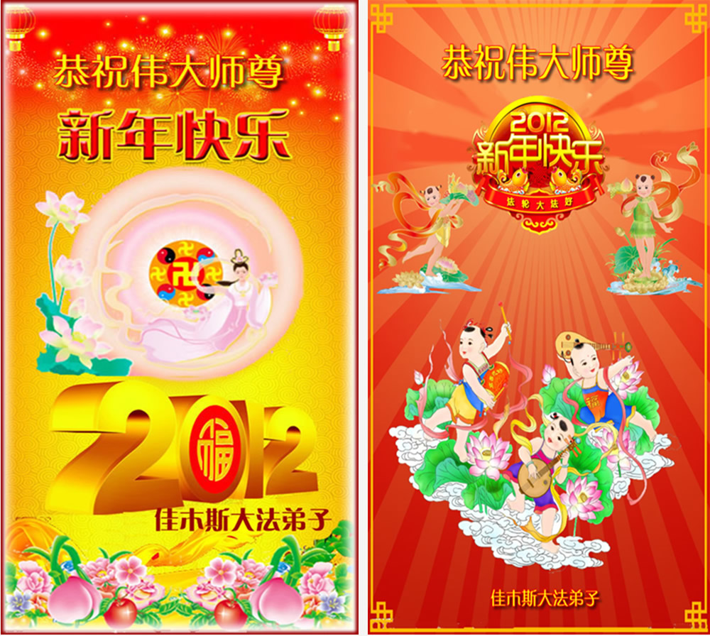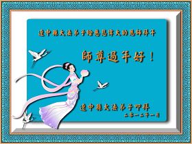 恭祝师尊 新年好,新年快乐 每逢佳节倍思亲 师尊何时归 慈悲救度迷中生 巨难师尊承 弟子做好三件事 师尊最欣慰 学法修心向内找 圆满随师归 哈尔滨道里区学法小组弟子叩拜 沈阳市法库县一大法弟子全家恭祝师尊新年好!