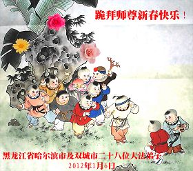 黑龙江省哈尔滨市及双城市二十八位大法弟子跪拜师尊新年快乐!