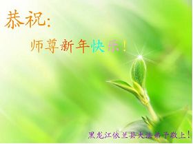 师父好! 法轮大法好! 真善忍好! 黑龙江省依兰县学法小组的大法弟子祝慈悲伟大的师尊新年快乐!