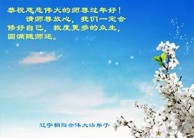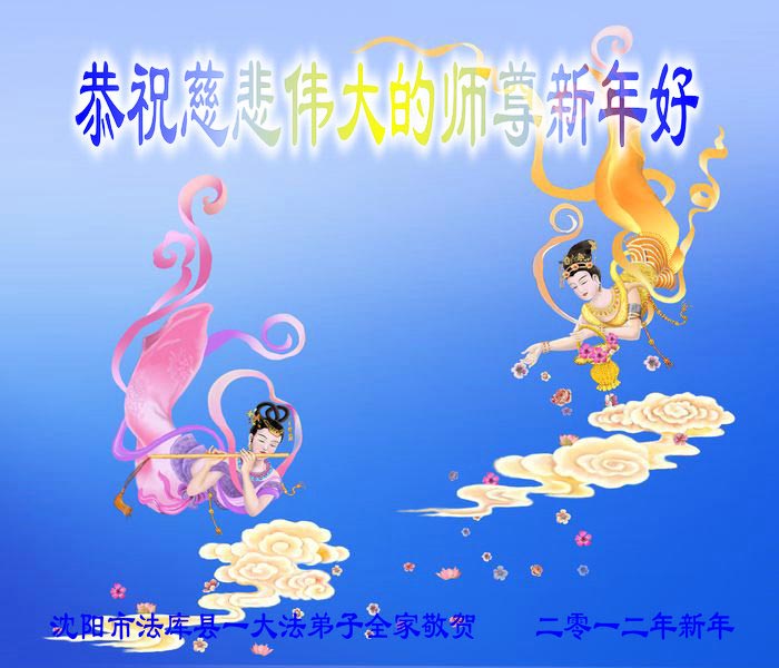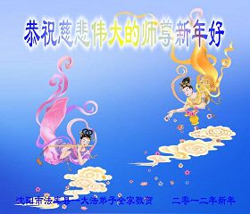 我是一名吉林省吉林市船营区大法弟子,在此新年来临之际,恭请师父新年快乐!在今后有限时间里,一定做好三件事,请师父放心。 沈阳市一学法小组两名大法弟子恭祝慈悲伟大的师父新年快乐!