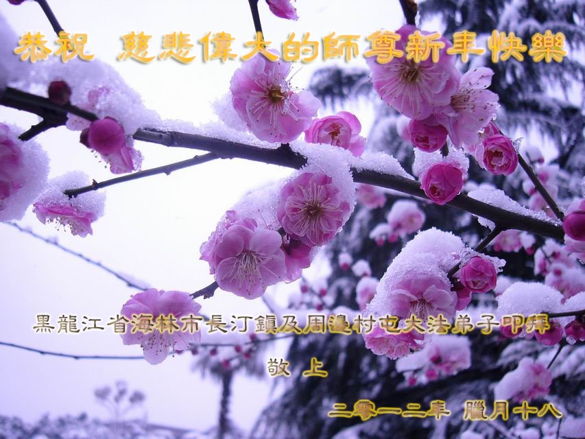 黑龙江省海林市大法弟子给慈悲伟大的师尊拜年,恭祝师尊新年快乐!大陆大法弟子想念您!