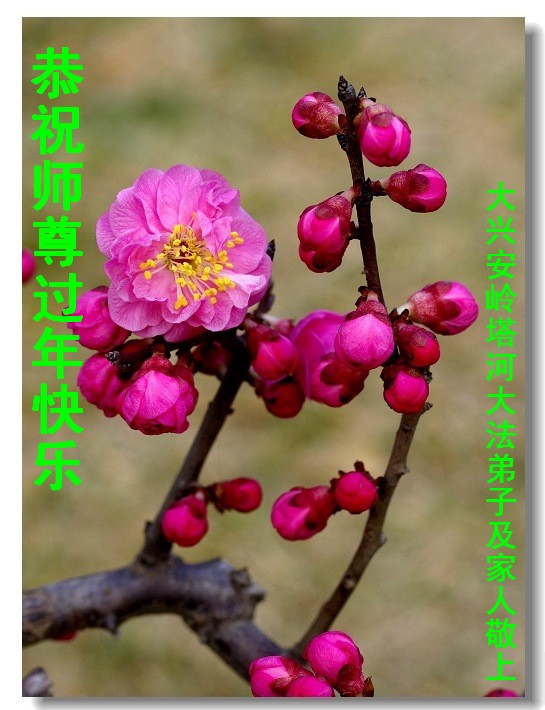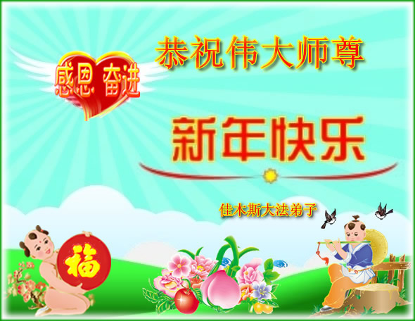 新年到来之际,您的弟子恭祝慈悲伟大的师尊新年快乐!并让师尊放心,弟子会听师父的话,做好三件事,助师正法,救度众生。完成史前大愿。 黑龙江省七台河市勃利县全体大法弟子恭祝师尊新年快乐!