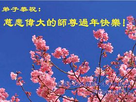 感谢师尊慈悲苦度之恩!在新的一年里,要谨记弟子的责任:多学法学好法,向内找,修好自己,多救众生,紧跟正法進程,圆满随师把家还!请师尊放心! 吉林省白城全体大法弟子恭祝慈悲伟大的师尊新年好!