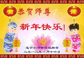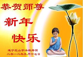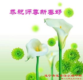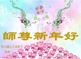 请师尊放心,在新的一年里,我一定要严格要求自己,努力做好三件事,整体配合好,修好自己,走好最后的路,让师父多一份欣慰,少一份操劳,圆满随师还,恭迎师父早日回到大陆。 四川省成都市郫县大法弟子恭祝师尊新年快乐!