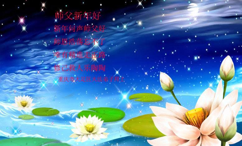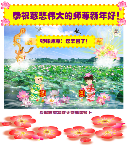 成都大法弟子恭祝慈悲伟大的师父新年快乐! 四川遂宁流离失所的大法弟子恭祝伟大师尊新年快乐