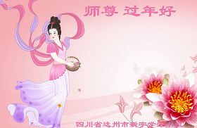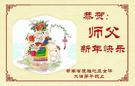 尊敬的师父,您好! 恭祝师尊新年快乐! 我们遵照师父要求做好三件事,跟随师父助师正法到底,请师父放心! 中国四川阿坝州全体大法弟子 成都大法弟子向师尊拜年