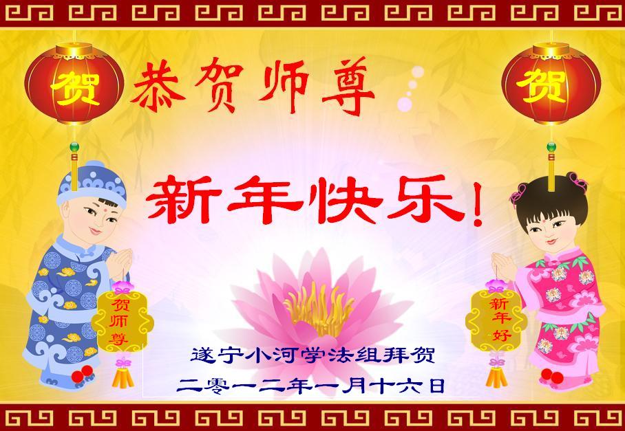 遂宁市十二人学法小组叩拜 2012年元月17日 遂宁市多人学法小组向师尊问好!恭祝师尊新年快乐!