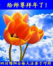 我们家里,婆婆修炼大法,我们全家受益,明白了真相,退出了邪团队。在生活中努力同化“真善忍”。在这新年来临之际祝师父过年好! 四川绵阳市全体大法弟子向我们伟大的师父拜年!