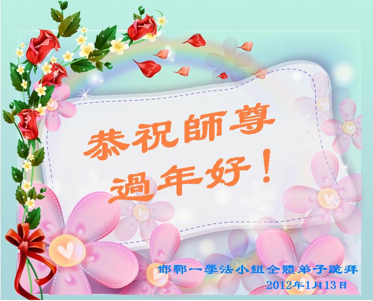 【明慧网二零一二年一月二十二日】从二零零一年开始,世界各地的大法弟子纷纷在中国新年之际,将发自内心的节日贺词、自制的贺卡、诗歌等寄给明慧网,向慈悲无私的师尊李洪志先生恭祝过年好、新年好。这里收集的是壬辰年(二零一二年)新年各地大法弟子制作的部份贺卡。更多的新年贺卡和贺词正在明慧网上陆续发表。