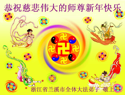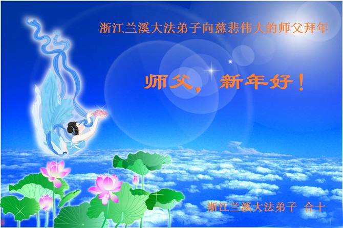 山东高密一法轮大法修炼之家恭祝师父过年好!师父您辛苦了! 在新的一年里,我们将更好的做好三件事,让师父少一些操劳,多一些安慰。 浙江省宁波市大法弟子祝愿慈悲伟大的师父新年快乐