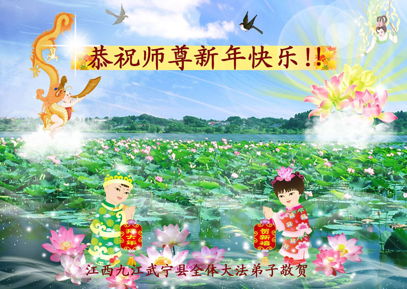 感师恩 迎新年 感师恩 迎新年 三:退.救人不等闲 神韵巡演跨五洲 遍撒甘露救众生 师父慈悲, 佛恩浩荡, 为正苍穹转法轮。 言难尽, 众生得救度, 万古洪恩。 江苏连云港市大法弟子敬上 壬辰年新年 江西九江全体大法弟子恭祝慈悲伟大的师父新年好!