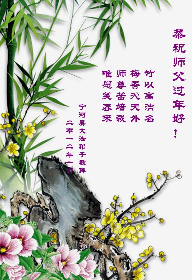 【明慧网二零一二年一月二十三日】从二零零一年开始,世界各地的大法弟子纷纷在中国新年之际,将发自内心的节日贺词、自制的贺卡、诗歌等寄给明慧网,向慈悲无私的师尊李洪志先生恭祝新年快乐。这里收集的是壬辰年(二零一二年)新年大陆大法弟子发来的部份贺词贺卡。 大陆大法弟子恭祝师尊新年快乐!