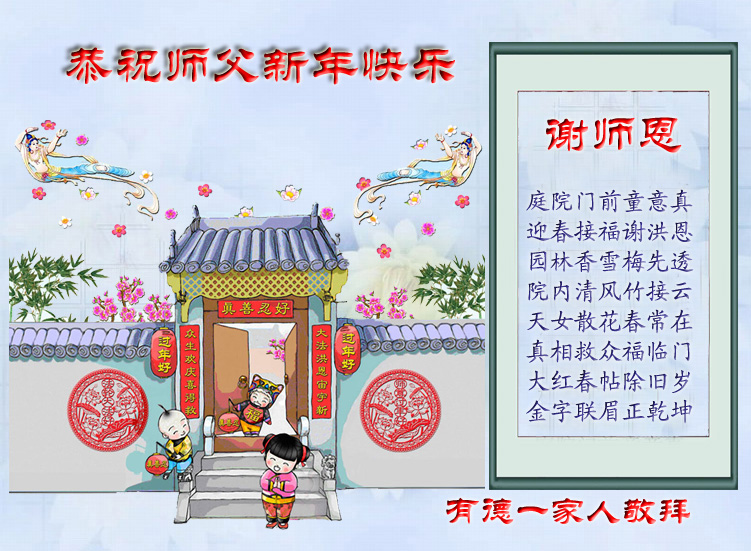 师父新年好!新年快乐!弟子给您拜年了! 合十! 大陆大法弟子及家人恭祝师尊新年好