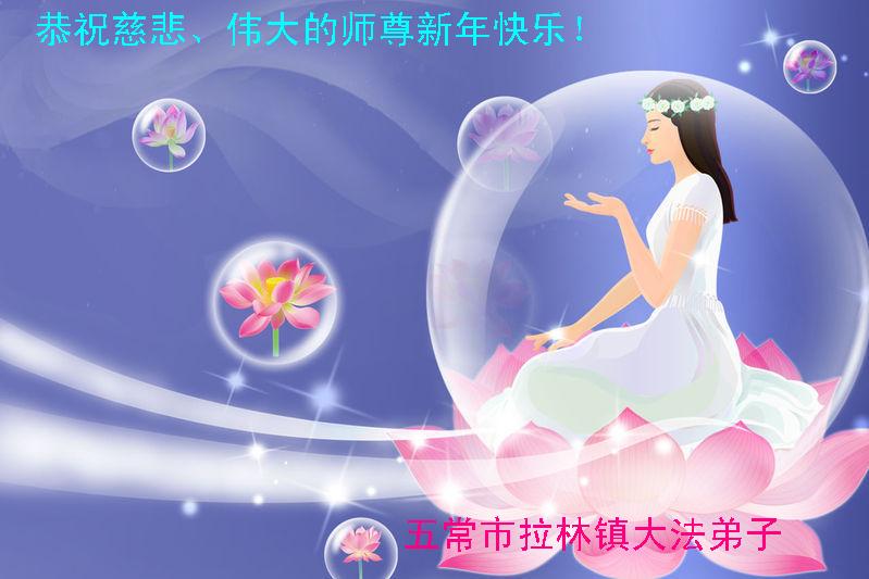 五常市拉林镇大法弟子恭祝慈悲、伟大的师尊新年快乐!