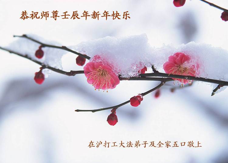 师父过年好; 弟子在新的一年里努力实修 更多救人让师父放心。 大法弟子莲成叩拜 在沪打工的大法弟子及全家恭祝师尊壬辰年新年快乐!