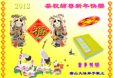 恭祝慈悲伟大的师尊!新年快乐! 佳南三人学法小组敬上 二零一二年一月十日 大陆大法弟子恭祝师尊过年好!