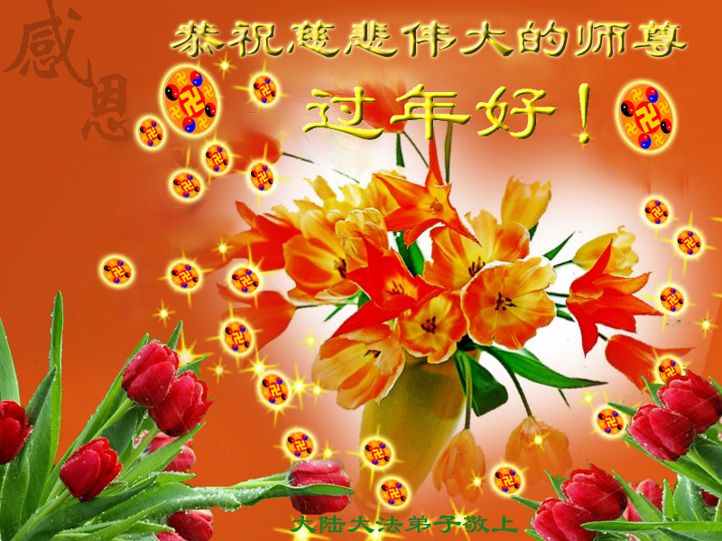 大陆大法弟子向慈悲伟大的师尊致以节日的问候!祝我们的师尊过年好!