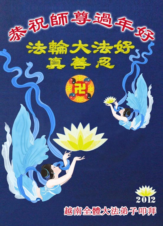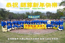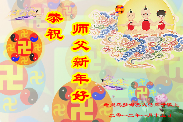 【明慧网二零一二年一月二十三日】壬辰年(二零一二年)新年之际,中国大陆和海外的大法弟子纷纷寄来贺卡贺词,恭祝慈悲伟大的师尊新年快乐,感谢师尊的慈悲救度。以下是亚太地区大法弟子的贺词贺卡。 台湾全体大法弟子恭祝师尊新年好!