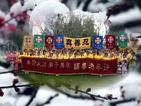 全体香港大法弟子恭祝师父新年好! 观看录像(15.5MB) 台湾嘉义法轮功学员向师父拜年(图)