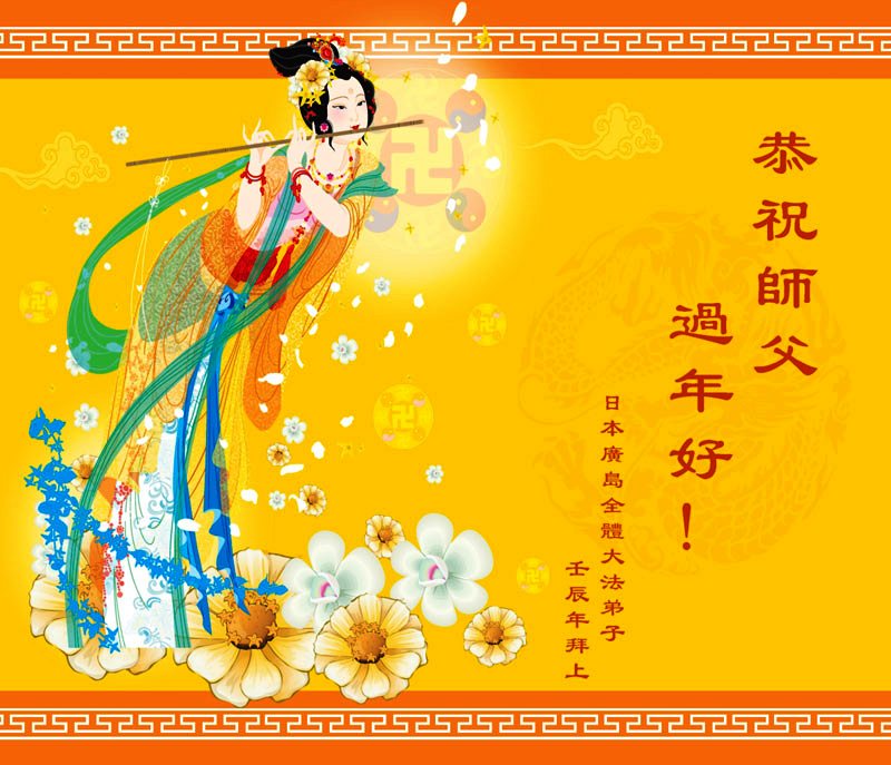 弟子珍惜万古机缘,学好法,修好自己,多救人,新一年更加精進,跟师尊回家。 日本广岛全体大法弟子恭祝师父过年好!
