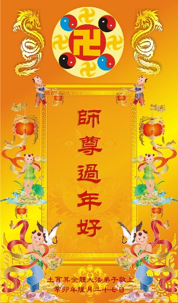 恭祝师尊新年快乐! 土耳其全体大法弟子合十敬上 辛卯年腊月二十七日 越南全体大法弟子恭祝慈悲伟大的师尊过年好!