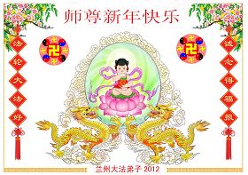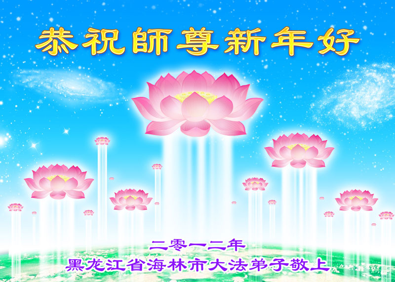 【明慧网二零一二年一月二十四日】从二零零一年开始,世界各地的大法弟子纷纷在中国新年之际,将发自内心的节日贺词、自制的贺卡、诗歌等寄给明慧网,向慈悲无私的师尊李洪志先生恭祝新年快乐。这里收集的是壬辰年(二零一二年)新年大陆大法弟子发来的部份贺词贺卡。 辽宁绥中全体大法弟子祝愿伟大的师尊过年好!