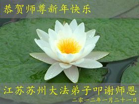 我们在新的一年里要勇猛精進,多学法,学好法,多救人。多发正念,做好三件事。请师父放心! 江苏苏州大法弟子恭贺师尊新年快乐!
